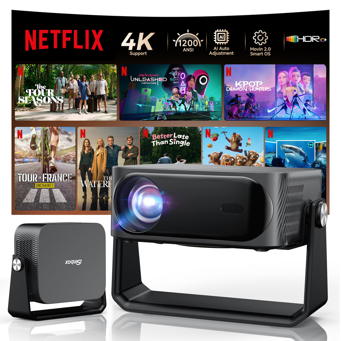 [AI Movin 2.0 /1200 ANSI/Auto Focus & Keystone] 4K Outdoor Projector with Wifi and Bluetooth, Smart Portable Proyector with Built in Apps Netflix/YouTube/PrimeVideo & Dolby, Home Theater with HDR10+